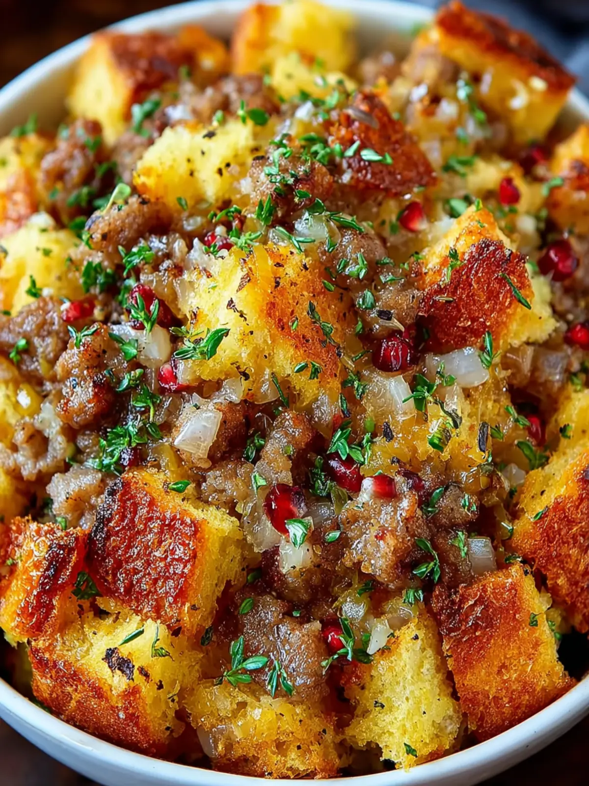 You’ll appreciate how simple it is to put together. Just a few steps, and you’ll have a stunning side dish that looks as good as it tastes. Whether served alongside your favorite holiday proteins or as a standout on its own, this stuffing is destined to become a favorite at your table.