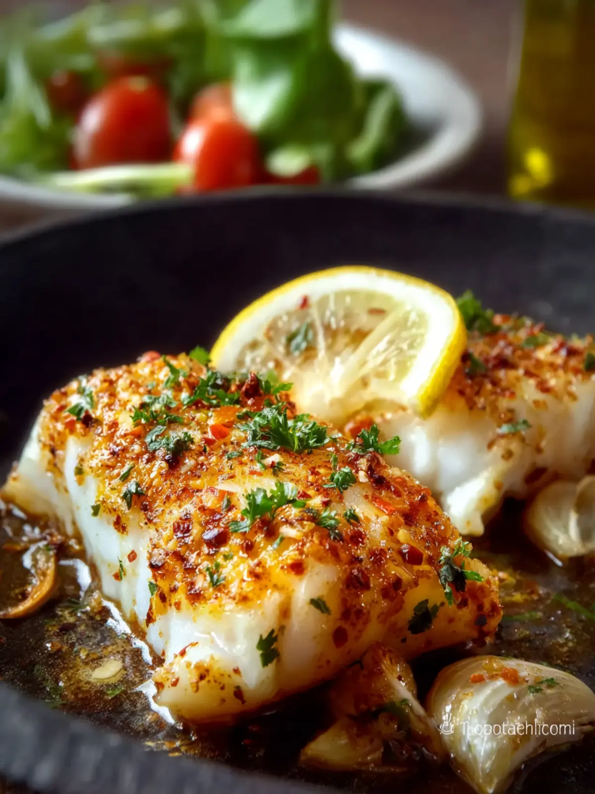 Cod Fillets: The star of this dish is the flaky white cod. Prized for its mild flavor and delicate texture, fresh cod brings an elegance to your table. If fresh isn’t available, frozen fillets will work just fine—just ensure they’re properly thawed before cooking to achieve that tender bite.