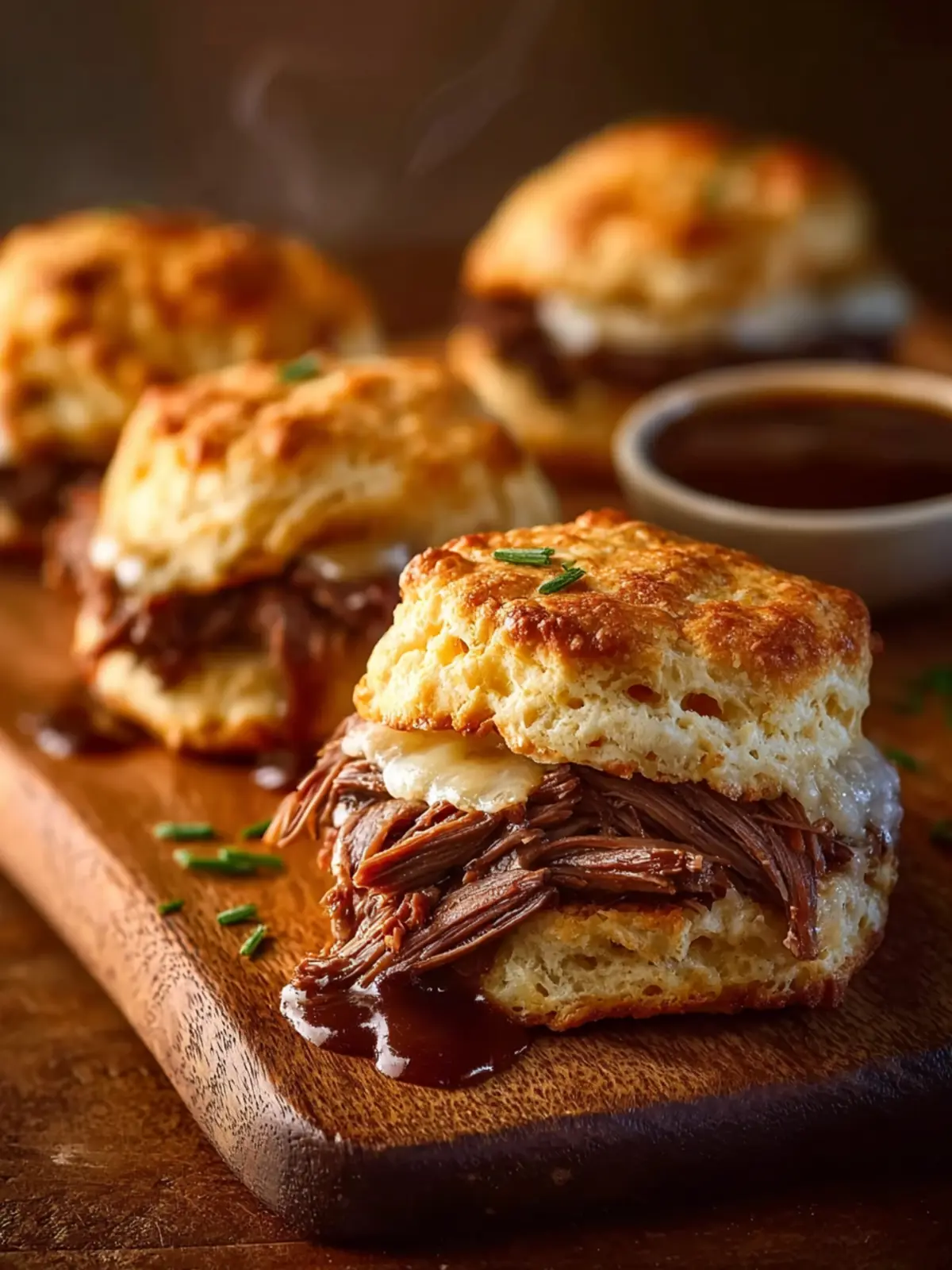 Roast Beef Biscuits with Au Jus Dipping Sauce