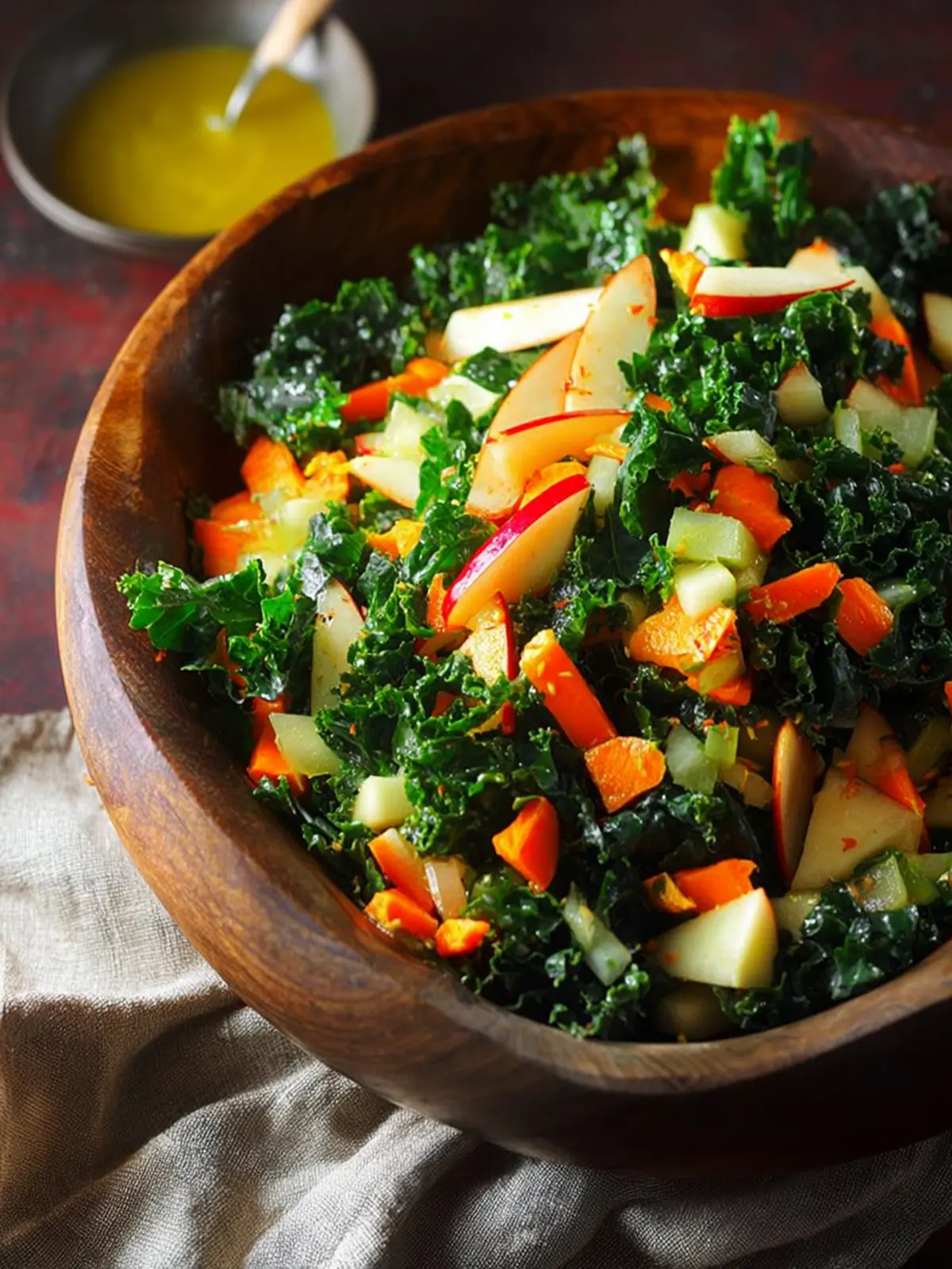The combination of sweet carrots, crisp apples, and tender kale creates a delightful medley that captures the essence of fresh produce. This salad shines with: