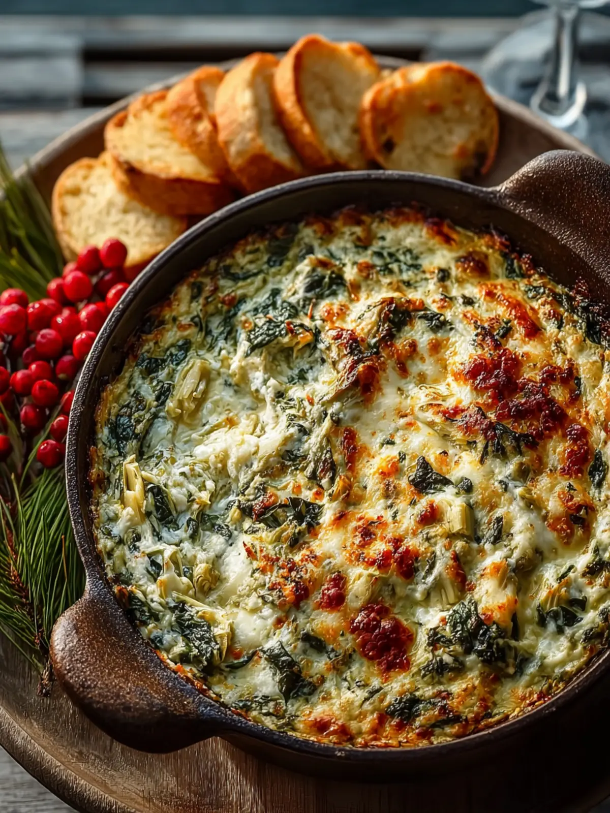 A creamy and cheesy spinach artichoke dip, perfect for parties!