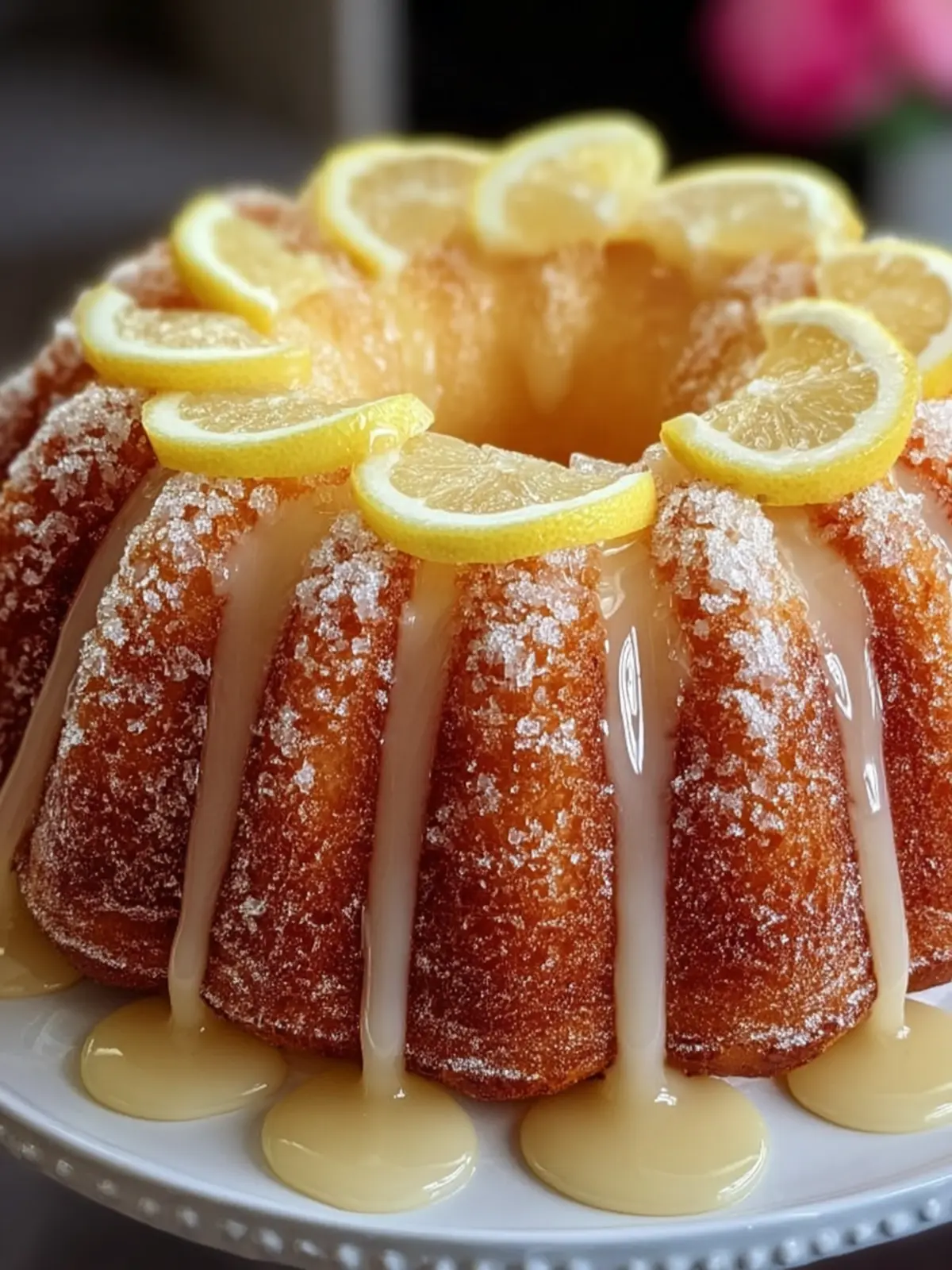 A delightful lemon-flavored bundt cake that’s perfectly moist and topped with a zesty lemon glaze.