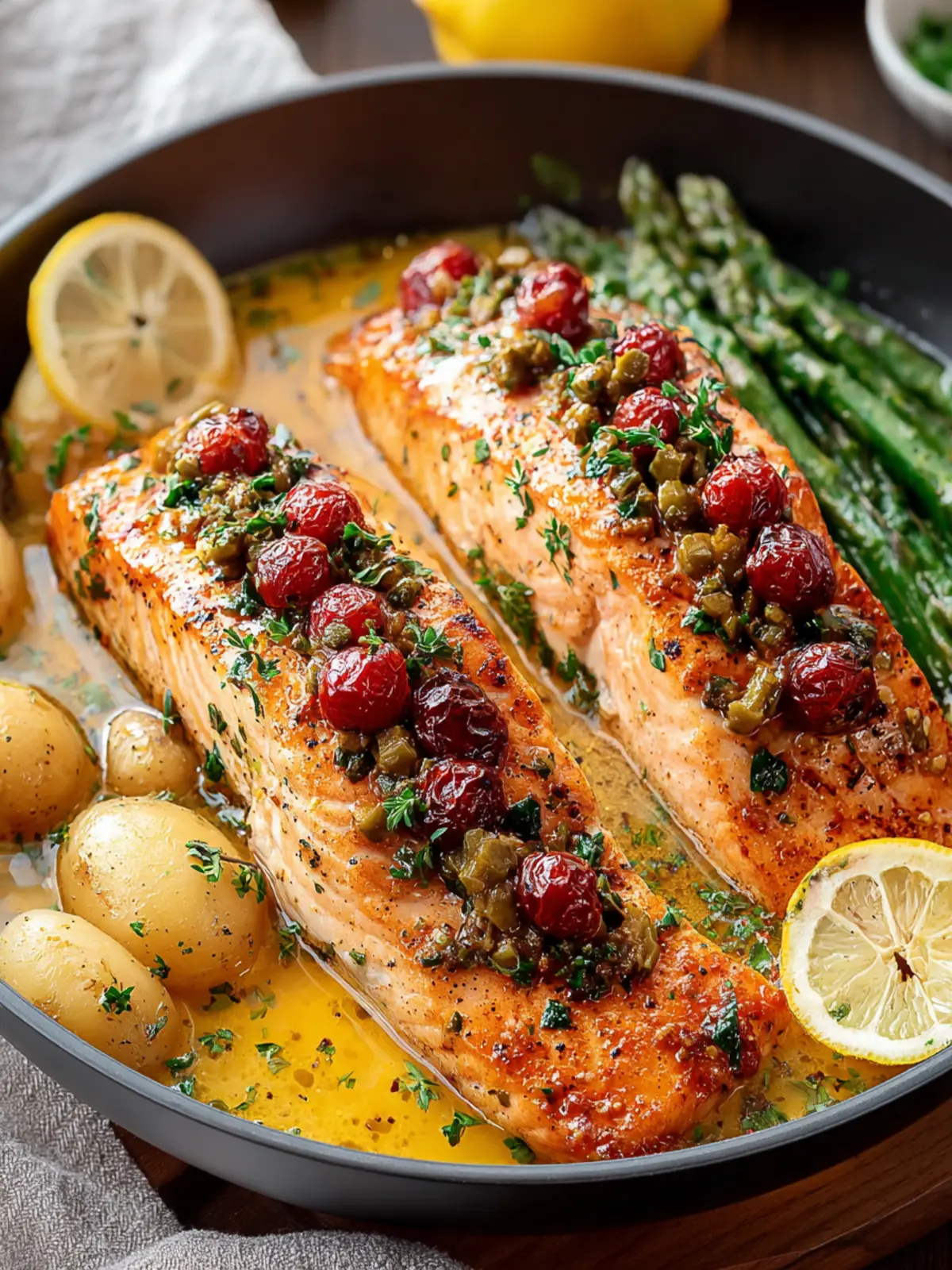 Bursting with sweetness, cherry tomatoes add a zesty pop to the dish. Their juiciness complements the richness of the salmon beautifully, creating a colorful visual that invites you in for a bite.